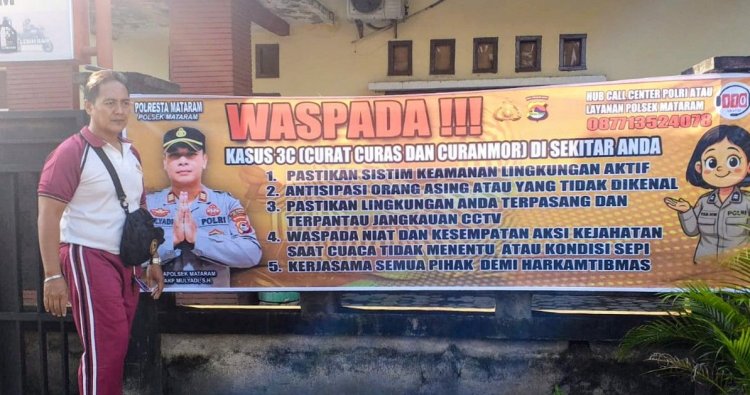 Mataram, NTB — Dalam upaya menjaga situasi keamanan dan ketertiban masyarakat (kamtibmas) tetap kondusif, Polsek Mataram mengintensifkan sosialisasi pencegahan tindak kejahatan di wilayah hukumnya. Kegiatan ini dilakukan melalui pemasangan spanduk imbauan kamtibmas serta penyebarluasan nomor layanan darurat kepolisian, Sabtu (24/1/2026) pagi.